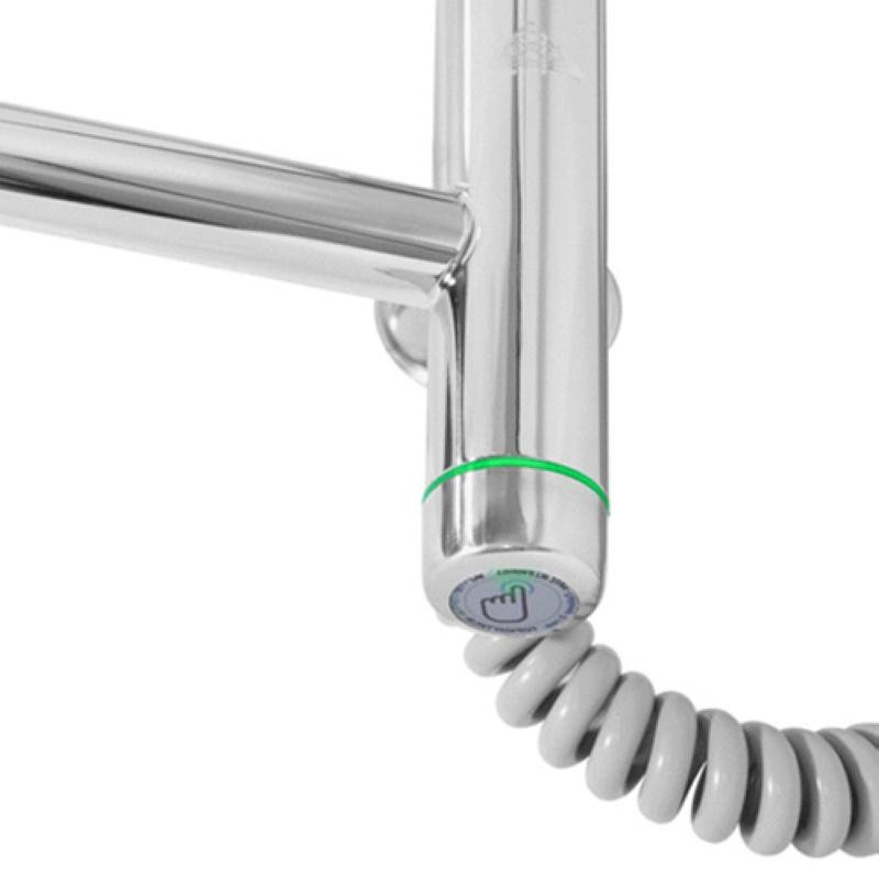 При включении полотенцесушителя в электрическую сеть засветится и погаснет подсветка (синий цвет), что сигнализирует об исправности регулятора. Регулятор S3 имеет три режима работы: "min", "mid" и "max". Режимы переключаются кратковременным прикосновением к сенсору (<2 сек) – один за другим по кругу. Сенсор размещается на торце нижней стойки с регулятором.