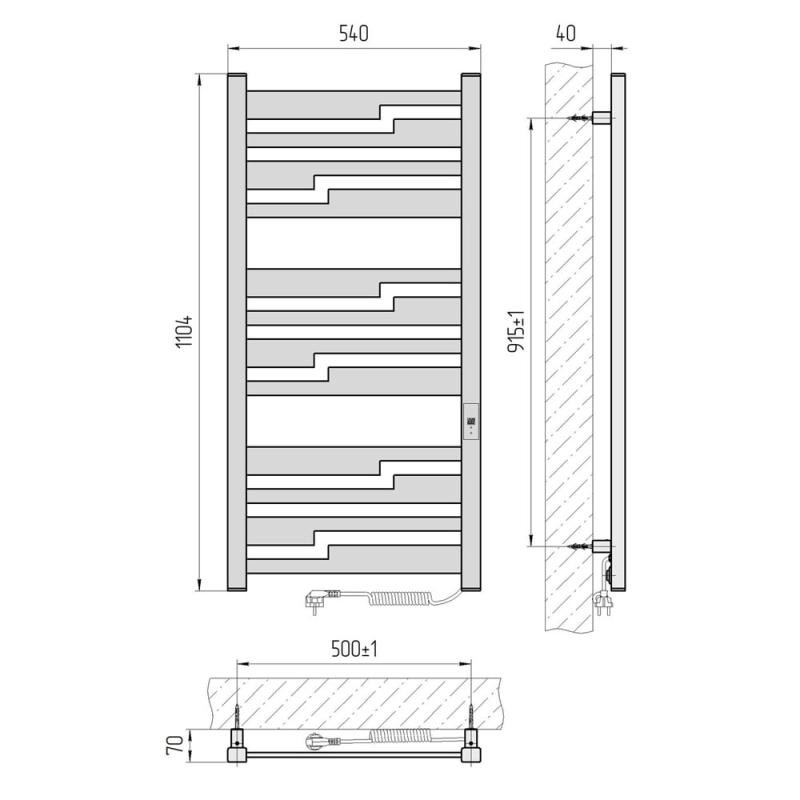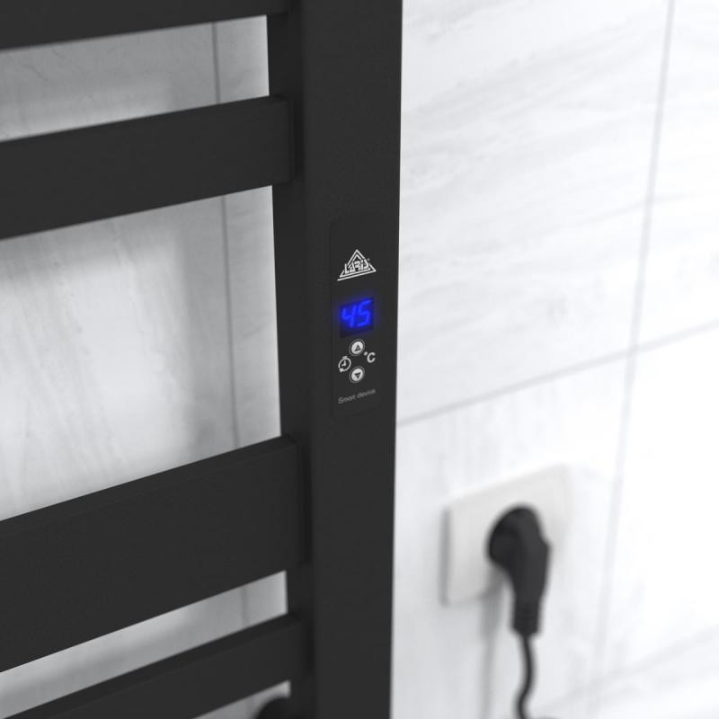 Особенности: управляет нагревом электрополотенцесушителя микропроцессорный термоконтроллер. Для начала работы необходимо задать температуру полотенцесушителя. Дополнительно можно включать/выключать нагрев, программированно снижать мощность до 50%. Терморегулятор контролирует температуру поверхности полотенцесушителя, что исключает ее перегрев. Выдерживает напряжение 1500 В переменного тока/минуту. Имеется удобная функция блокировки кнопок от детей. Присутствует возможность программированного отключения полотенцесушителя – таймер от 1 до 12 часов.
