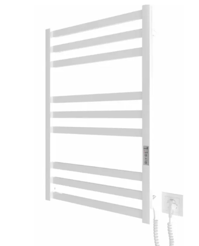 Главной особенностью данной полотенцесушителя является наличие таймера-регулятора, позволяющего запрограммировать его выключение через 3 или 6 часов на выбор, а также регулировать температуру в трех режимах (40 – 45 – 50° C) и позволяет экономить около 60% электроэнергии.