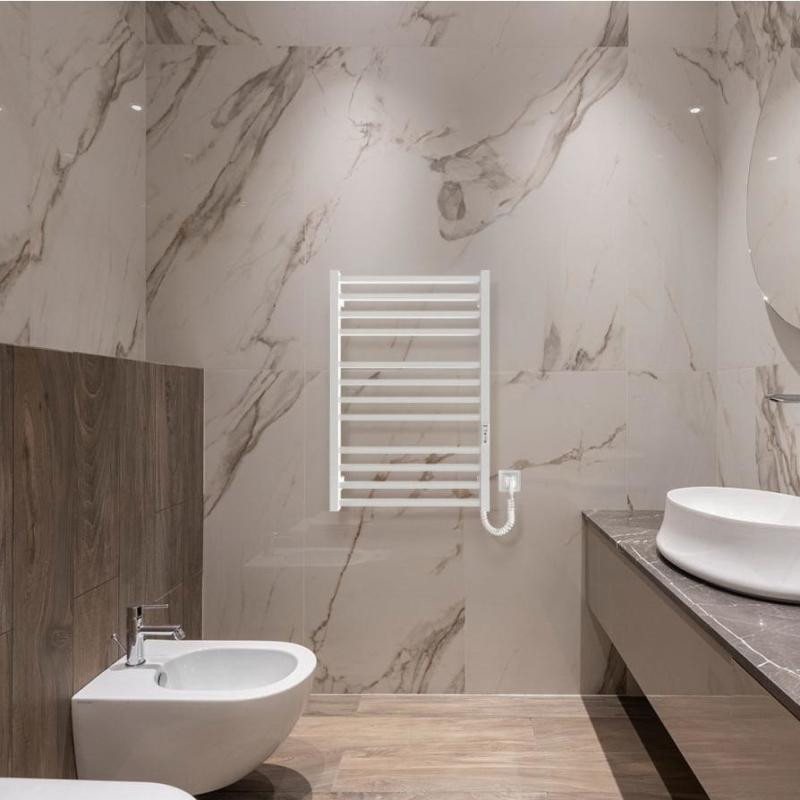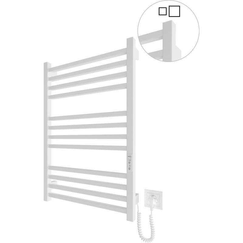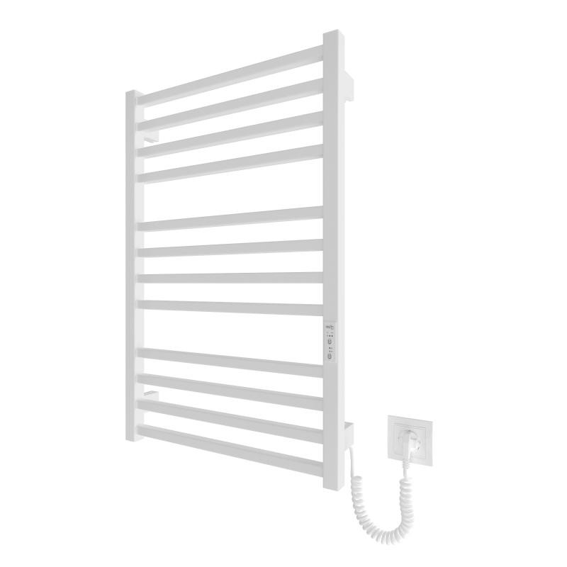 Электрический полотенцесушитель HF London 770х530. Работает по технологии сухого ТЭНа. Оборудован встроенным таймер-регулятором и коннектором для подключения к питанию с любой стороны. Оснащен комплектом для скрытого подключения. Модель имеет 12 ребер из квадратной трубы и стойки из квадратной трубы. Материал - черная сталь с антикоррозийной обработкой. Варианты покрытия: черный мат или белый мат. Температурные режимы таймер-регулятора: 40°С, 45°С, 50°С. Время работы: 3, 6 часов или постоянный нагрев. Мощность 130 Вт. Гарантия - 3 года.