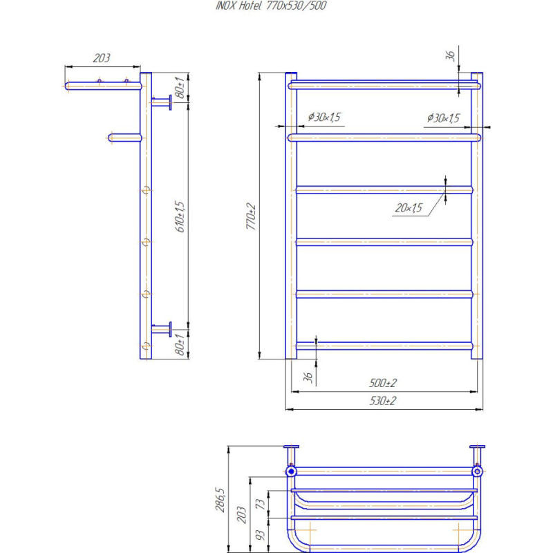 Водяной полотенцесушитель Марио Отел 770х530 с межосевым расстоянием для подключения 500 мм, диметр подключения G 1/2'' состоит из 5 ребер и полки. Полотенцесушитель Хотел производственного предприятия Mario изготовлен из европейской нержавеющей стали АІSI 304. Полотенцесушители с полкой всегда выгодно отличались своей практичностью, на полку более удобно вешать небольшие вещи (например детские), полотенца и т.д. Аккуратные округлые формы полотенцесушителя подойдут практически в любой интерьер ванной комнаты.
