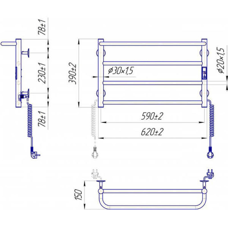 Примечание: Электрический полотенцесушитель Марио Люкс Сити TR может быть переоборудован под скрытый монтаж (скрытое подключение), для этого нужно дополнительно преобрести Комплект скрытого подключения шнура. Детали уточняйте у продавца.