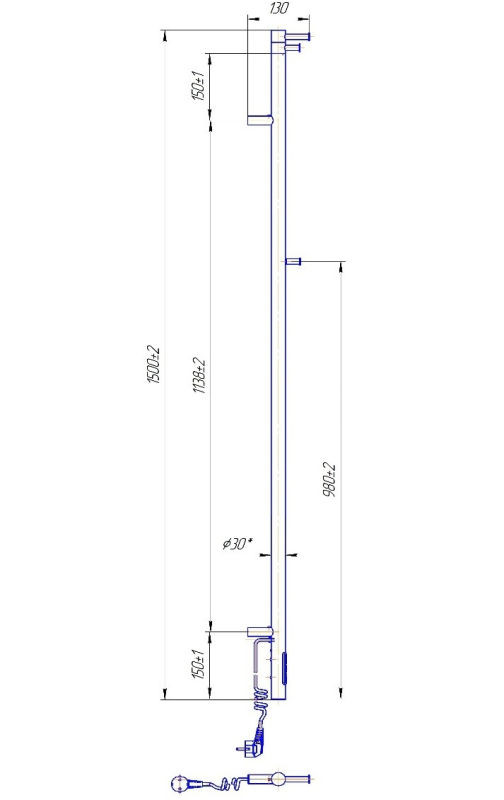 Примечание: Электрический полотенцесушитель Марио Рей-I может быть переоборудован под скрытый монтаж (скрытое подключение), для этого нужно дополнительно преобрести Комплект скрытого подключения шнура. Детали уточняйте у продавца.