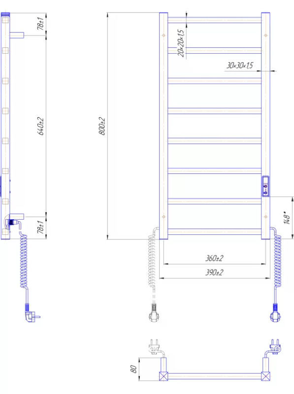 Электрический полотенцесушитель Токио-I 800x400/80 TR К с регулятором времени и температуры нагрева. Регулировка температуры в трех режимах: 40°С, 45°С, 50°С. Полотенцесушитель Токио-I производственного предприятия Марио, высотой 800 мм, шириной 400 мм. Номинальная мощность 115 W. Полотенцесушитель оборудован таймером, который позволяет установить время нагрева на 3 и 6 часов, или переключить режим работы на постоянный нагрев..