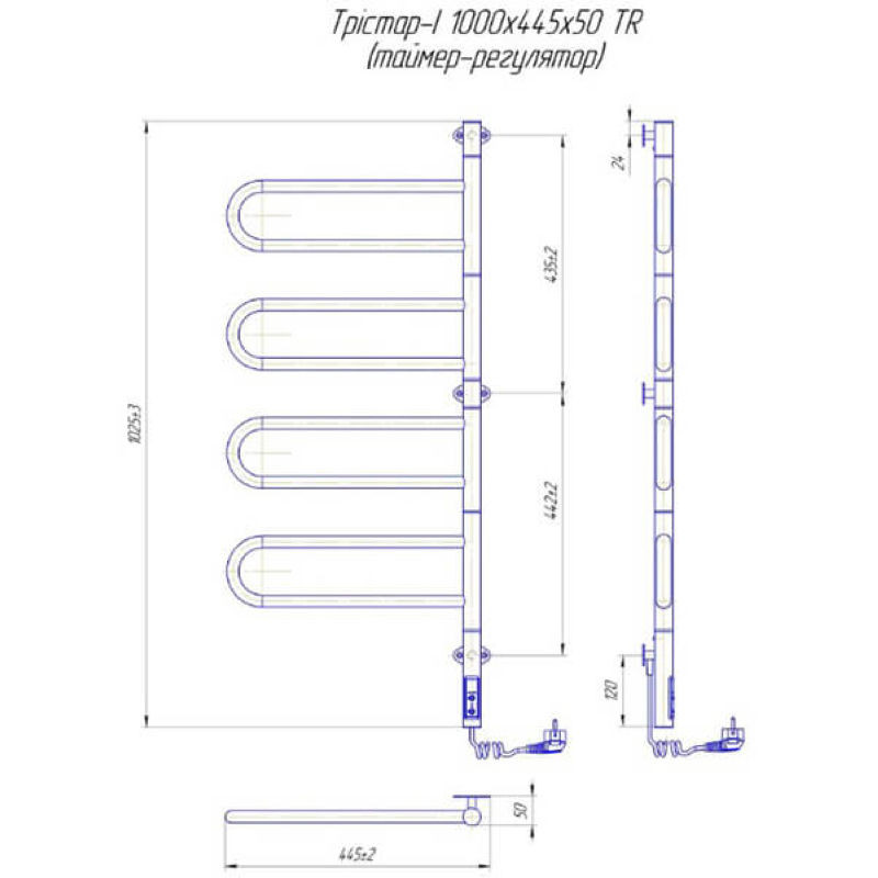 Описание Полотенцесушитель Mario Тристар-I 1000х445/55 електр. TR черный мат (2.3.0507.11.BM)