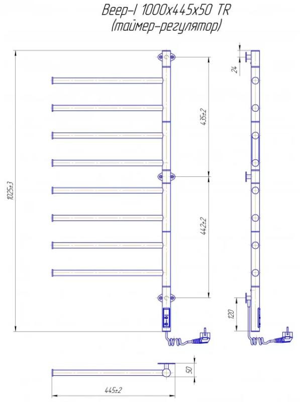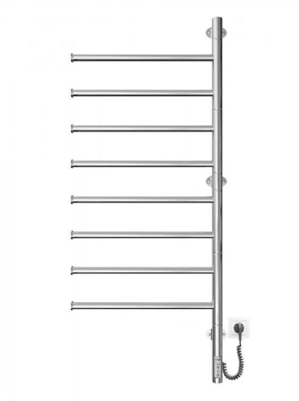 Главной особенностью данной полотенцесушителя является наличие таймера-регулятора, позволяющего запрограммировать его выключение через 3 или 6 часов на выбор, а также регулировать температуру в трех режимах (40 – 45 – 50°C).