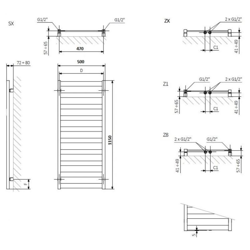 Для систем отопления (полотенцесушитель водяной) в зависимости от стороны подключения необходимо выбрать один из вариантов вентилей: