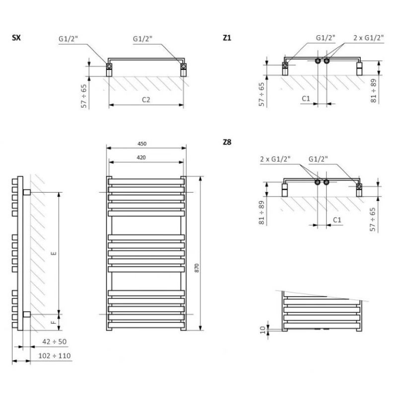 Для систем отопления (полотенцесушитель водяной) в зависимости от стороны подключения необходимо выбрать один из вариантов вентилей: