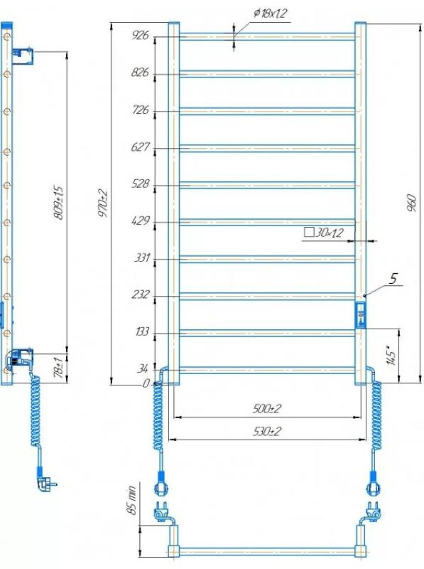 Электрическое полотенцесушитель HF Leeds 970×530.