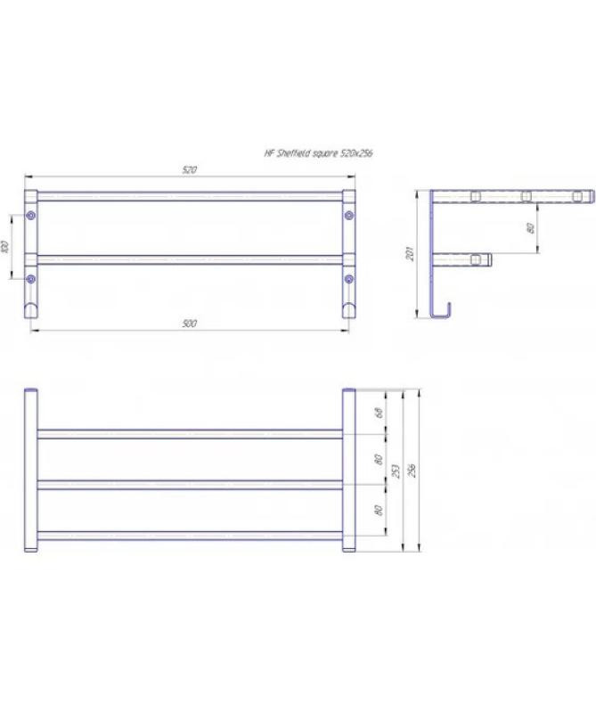 Полка для полотенец HF Sheffield с настенным креплением, размер 520х256 мм.