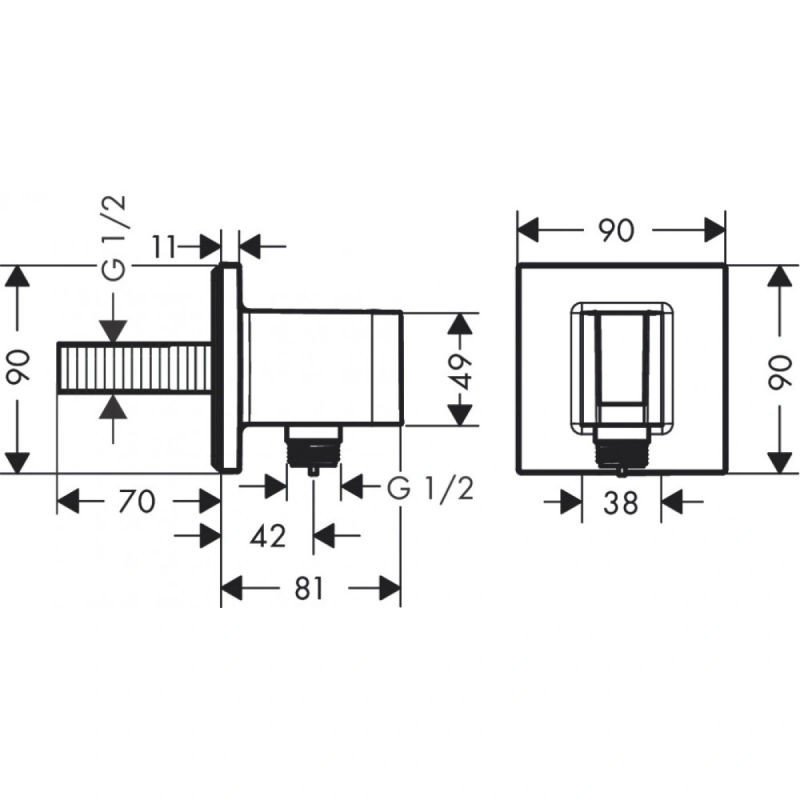 • состоит из: настенный разъем, накладка • версия: пластмассовый кожух с внутренним пластиковым каналом для подачи воды • фиксированное положение держателя • Для все ручные души Hansgrohe • материал: пластик • с обратным клапаном • тип соединения: G½