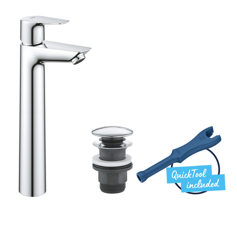 Результат продуманного дизайна, элегантность и гениальная практичность смесителя для раковины GROHE QuickFix Start Edge XL 23777001 делают его идеальным выбором для современных ванных комнат. Этот однорычажный смеситель для раковины предназначен для моноблочной установки на одно отверстие и имеет гладкий корпус. Донный клапан можно открыть и закрыть легким нажатием кончика пальца. Внутри керамического картриджа GROHE LongLife обеспечивается надежный и точный контроль объема и температуры с помощью прочного металлического рычага.