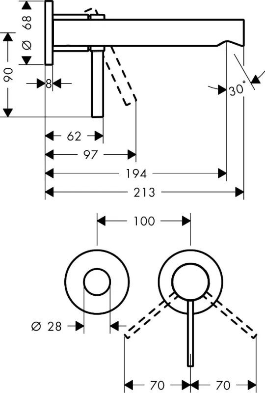 • вариант ручки: рычажная рукоятка