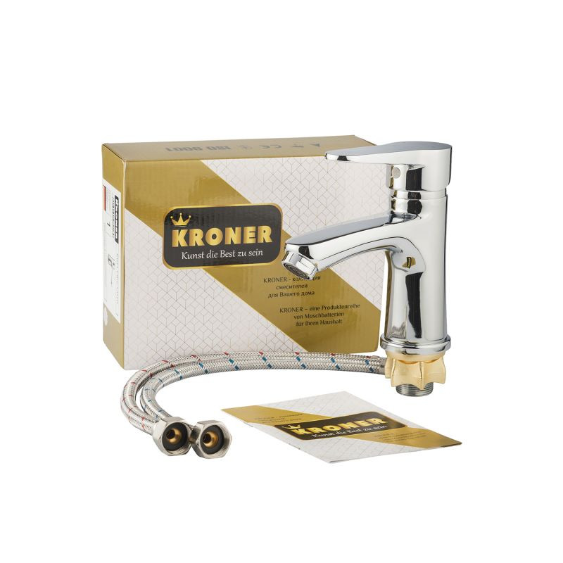 Смеситель для умывальника Kroner KRM Elbe-C010 CV014918 оснащён керамическим картриджем 35 мм, который обеспечивает плавный ход рычага и точную настройку температуры воды. Смеситель имеет гладкий корпус, без лишних деталей, что значительно упрощает уход за ним. Смеситель устанавливается на 1 отверстие с помощью гайки, а подключается с помощью гибких шлангов, которые входят в состав.