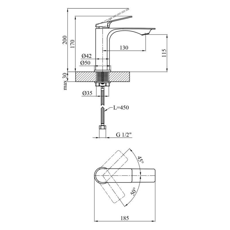Высота смесителя: 170 мм