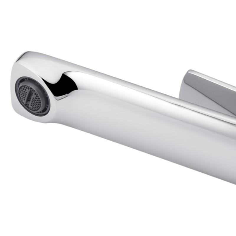 Размеры смесителя оптимальны для удобного использования: высота составляет 300 мм, ширина – 50 мм, глубина – 210 мм. Литое излияние обеспечивает надежность и устойчивость конструкции. Его высота – 245 мм, а длина – 160 мм, что позволяет комфортно пользоваться смесителем в повседневной жизни.