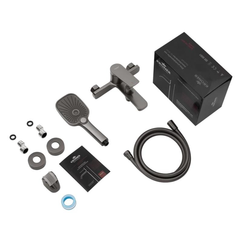 Смеситель для ванной Kroner KRP Makon - GRP060 из серии Makon – это современное и стильное решение для вашей ванной комнаты. Он совмещает элегантный дизайн, высокую функциональность и надежность благодаря использованию качественных материалов.