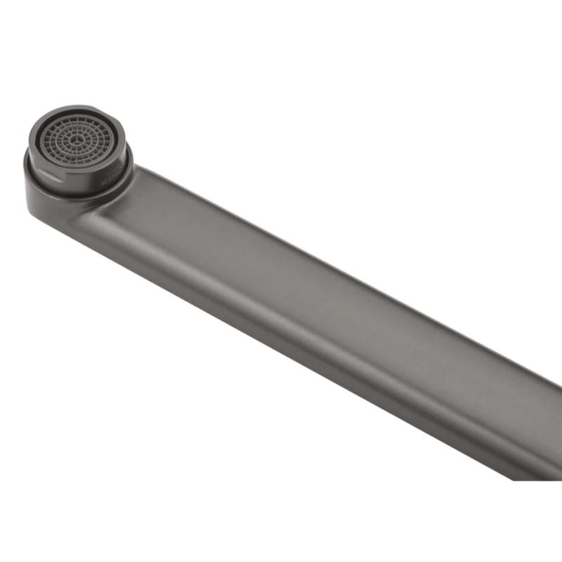 Смеситель изготовлен из крепкой латуни, что гарантирует долговечность и стойкость к коррозии. Матовая поверхность в графитовом цвете придает изделию современный и изящный вид, который идеально дополнит любой интерьер. Настенный способ монтажа обеспечивает надежность установки и удобство в использовании.