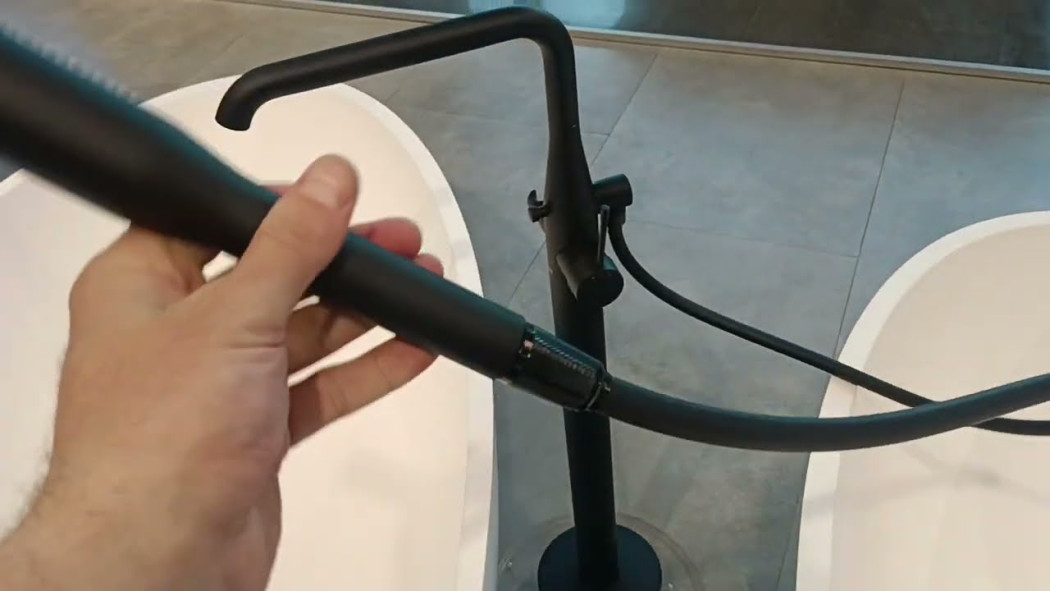Поворотный излив имеет достаточный вынос для гармоничного и комфортного расположения возле борта ванны. На смесителе предусмотрен душевой набор с лейкой. Керамический картридж нарантирует точную настройку температуры и напора воды, а также плавный ход рычага долгие годы. Для установки необходима скрытая монтажная часть, которая приобретается отдельно.