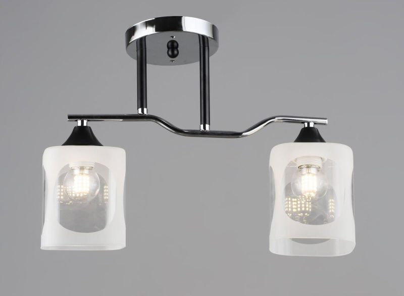 Потолочная люстра VALESO K2284/2 – это стильный акцент, идеально подходящий для современных интерьеров, включая кухни, коридоры и небольшие гостиные. Ее дизайн совмещает глянцевый хром с насыщенным черным цветом, создавая выразительный контраст. Люстра изготовлена из качественной стали и имеет изящные стеклянные плафоны, обеспечивающие приятное рассеянное освещение.