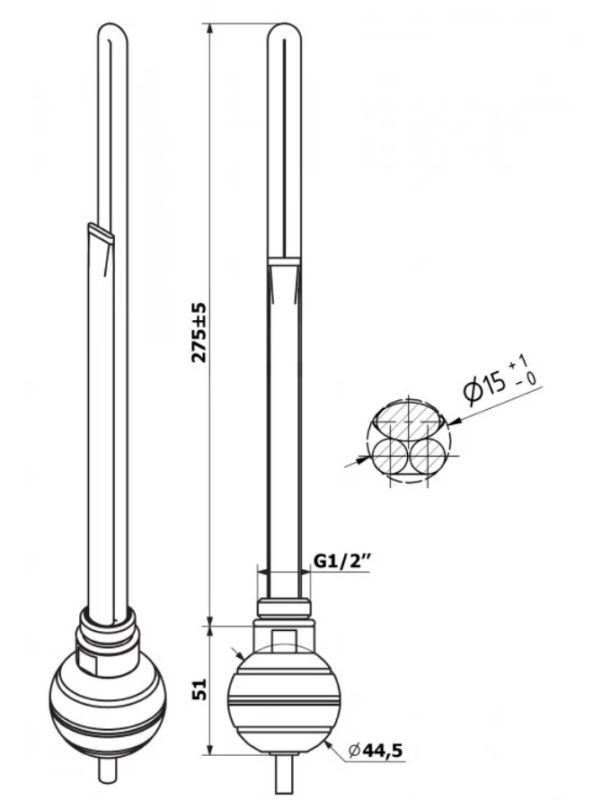 ТЭН для полотенцесушителя REG 120W служит для комбинированного подключения и обогрева теплоносителя внутри полотенцесушителя в неотопительный сезон. ТЭН не оборудован регулятором температуры. Максимальная температура нагрева 60° С. Степень защиты IPx4. Мощность ТЭНа 120 W.