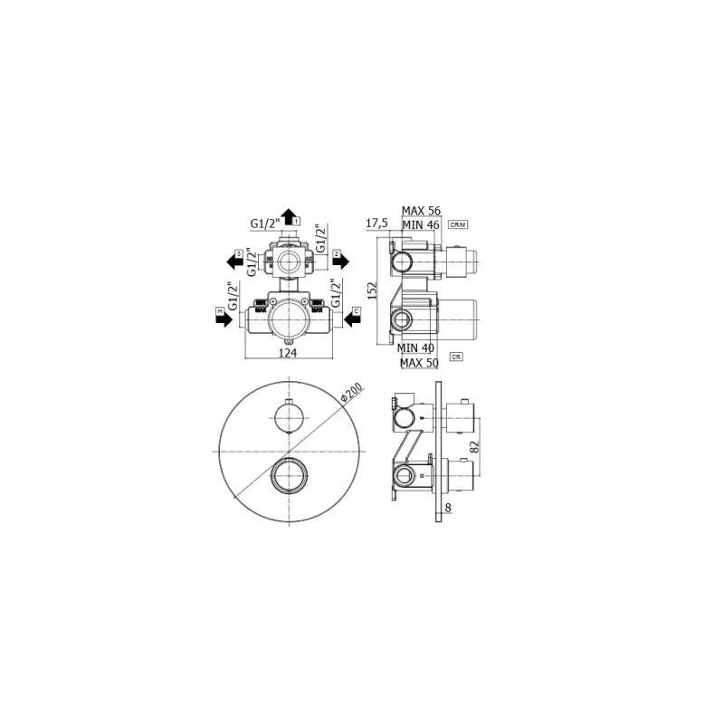 Термостатический смеситель для ванной комнаты скрытого монтажа Paffoni Light LIQ019NO предназначен для душевой системы с тремя потребителями. Поверхность имеет чёрное матовое покрытие. Верхняя рукоятка является дивертером и может переключать воду между тремя различными душевыми потоками или останавливать воду. Нижний рычаг регулирует температуру воды. Смеситель поставляется вместе со скрытой монтажной частью.