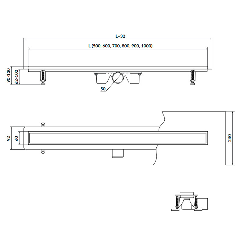 Линейные трапы ТАКО изготовлены из высококачественной низкоуглеродистой нержавеющей стали AISI 304 толщиной 1 мм, которая не подвергается воздействию химических веществ и устойчива к коррозии. Встроенный низкий сифон оснащен специальным контейнером и сепаратором больших частиц, что позволяет быстро прочистить ливень сверху. Классический гидрозатвор препятствует попаданию в помещение неприятных запахов из канализации. Пропускная способность сифона до 56 л/мин, поэтому трап TAKO станет идеальным решением для душевой зоны или кабинки как с душевой системой с небольшим расходом воды, так и с тропическим душем. Стандартная модель имеет двухстороннюю решетку: одна сторона имеет черную матовую поверхность, а другая – пустотелый желоб для возможности облицовки напольной плиткой. В комплект с трапом входят запчасти, необходимые для его монтажа: регулируемые ножки, позволяющие выставить высоту в диапазоне 6-10 см, гидроизоляционную мембрану и крюк для снятия решетки.