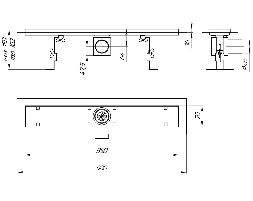 Монтажная высота: 102 ÷ 150 мм (регулируемые ножки)