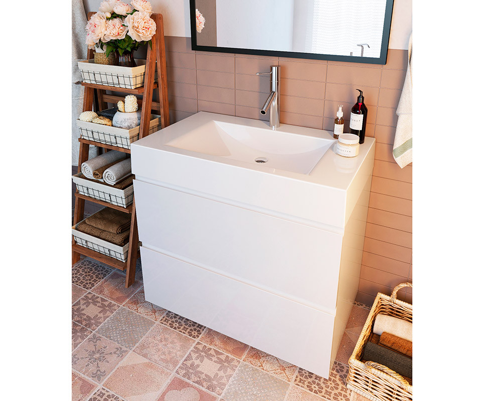 Корпус тумбы «Элегия» для ванной комнаты изготовлен из крашенного МДФ, используется фурнитура Blum (Австрия), которые восхищают своей безупречной работой и отличным качеством. Ящики с доводчиками.