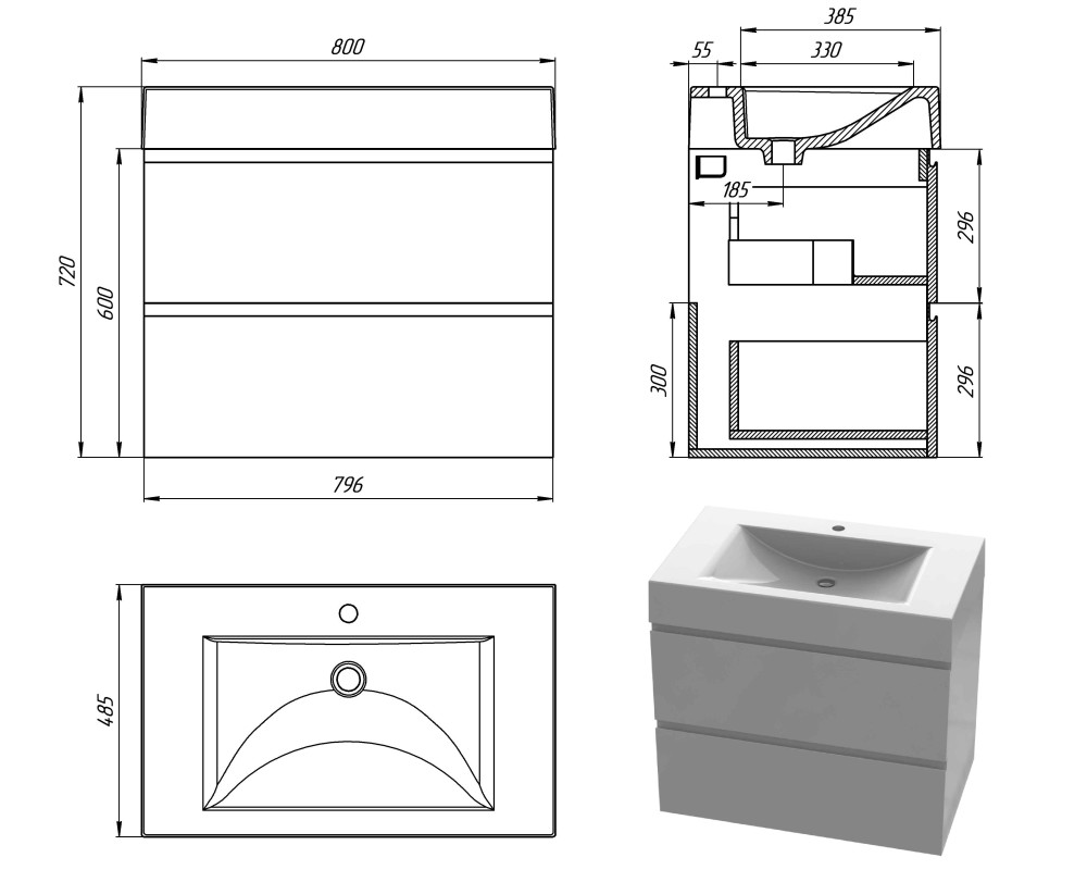 Размеры тумбы (ш*г*в): 800х485х720мм