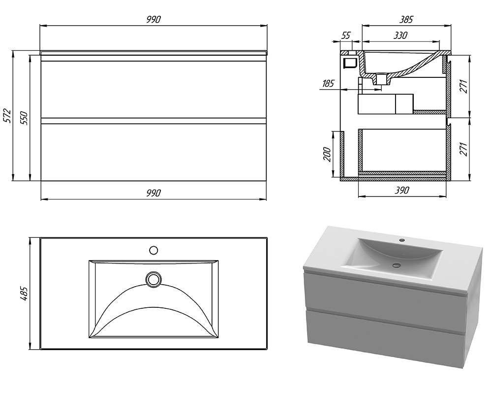 Размеры комплекта (ш*г*в): 990х485х572мм