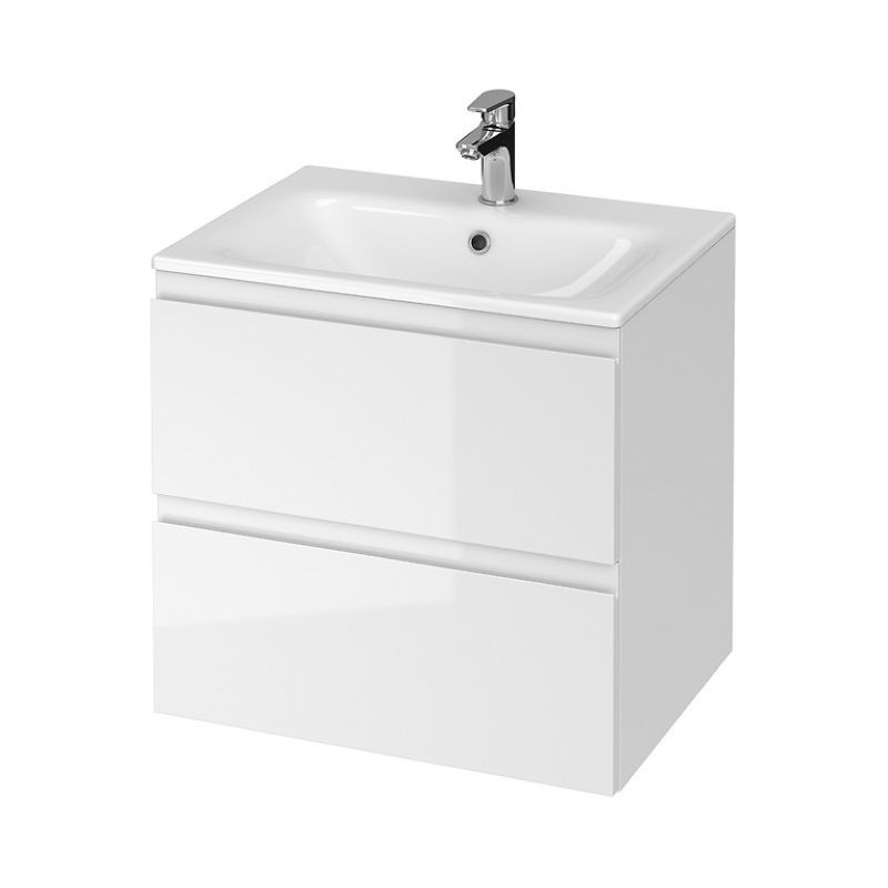 В сет MODUO 60 входит собранный шкафчик подвесного типа и мебельный умывальник врезного типа.