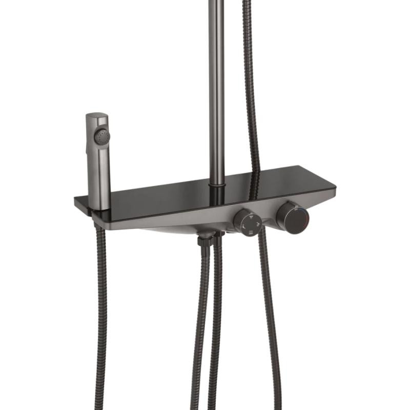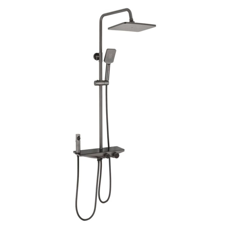 Душова система Kroner KRP Armada - GRP066 – це поєднання функціональності, стилю та зручності. Виконана в елегантному графітовому кольорі з матовою поверхнею, вона стане не тільки функціональним елементом вашої ванної кімнати, але й її стильним акцентом. Поєднання міцної латуні та високоякісного ABS-пластику забезпечує довговічність і надійність у використанні, а універсальний настінний спосіб монтажу дозволяє легко встановити систему в будь-якому просторі.