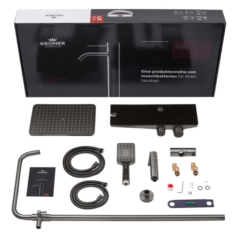 Система також оснащена гігієнічним душем зі шлангом довжиною 1250 мм, що додає додаткову функціональність, забезпечуючи комфорт і гігієнічність у використанні. Це рішення робить душову систему Kroner KRP Armada незамінною для сучасних ванних кімнат.