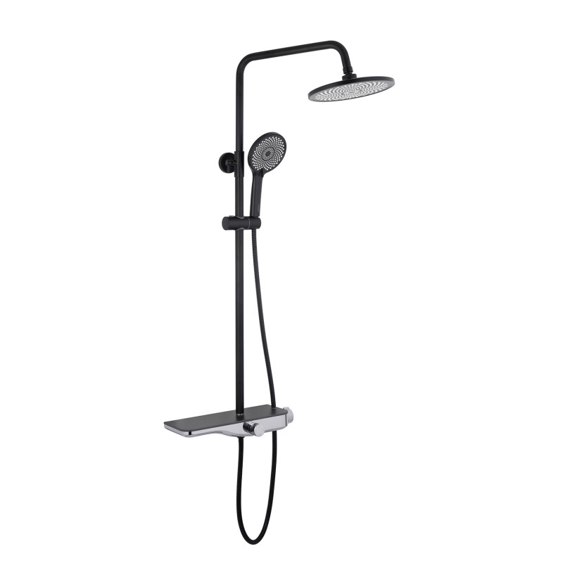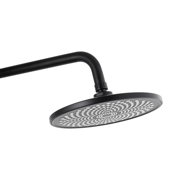 Виготовлена з високоякісної латуні та ABS пластику, ця душова система вирізняється міцністю і довговічністю. Чорне матове покриття додає елегантності та стійкості до подряпин. Настінний монтаж дозволяє зекономити простір, а приховані кріплення роблять установку акуратною.