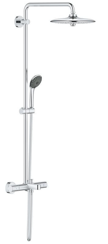 Технологія GROHE TurboStat гарантує постійну температуру без різких коливань, а GROHE DreamSpray забезпечує рівномірний потік із кожної форсунки. GROHE AquaDimmer пропонує плавне регулювання об’єму води та легке перемикання між верхнім і ручним душем, а функція GROHE DropStop запобігає капанню після вимкнення душу. Зручний для сім’ї, він також оснащений кнопкою GROHE SafeStop, яка може обмежити температуру до 38°C, щоб запобігти опікам, і внутрішнім водяним каналом, який зберігає поверхні душу прохолодними на дотик. Силіконові насадки SpeedClean можна очистити від вапняного нальоту легким рухом пальця, а сліпуче хромоване покриття GROHE Starlight є стійким до подряпин, яке залишатиметься сяючим довгі роки. Система має коротку трубу (1016 мм) між термостатом і верхнім кронштейном.