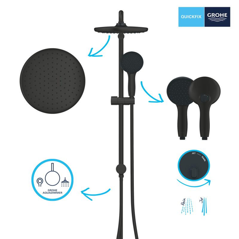Оновіть стиль своєї ванної кімнати та підніміть ефективність душу на новий рівень з матовою чорною душовою системою GROHE QuickFix Vitalio Start 250 Flex 266802431 – простим та доступним оновленням ванної кімнати!