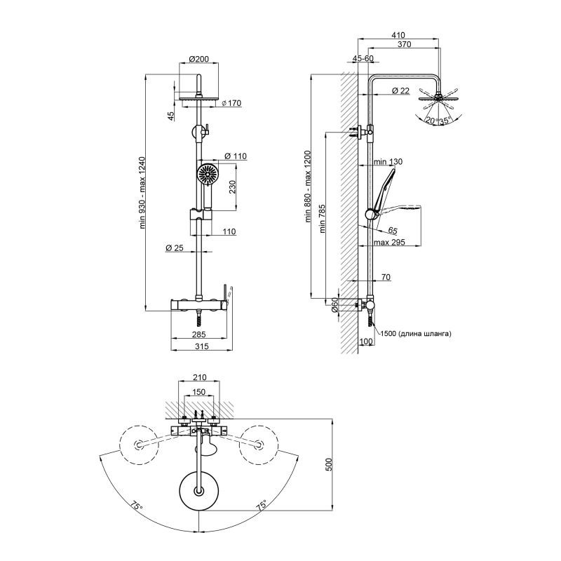Довжина кронштейна для верхнього душу, мм - 370
