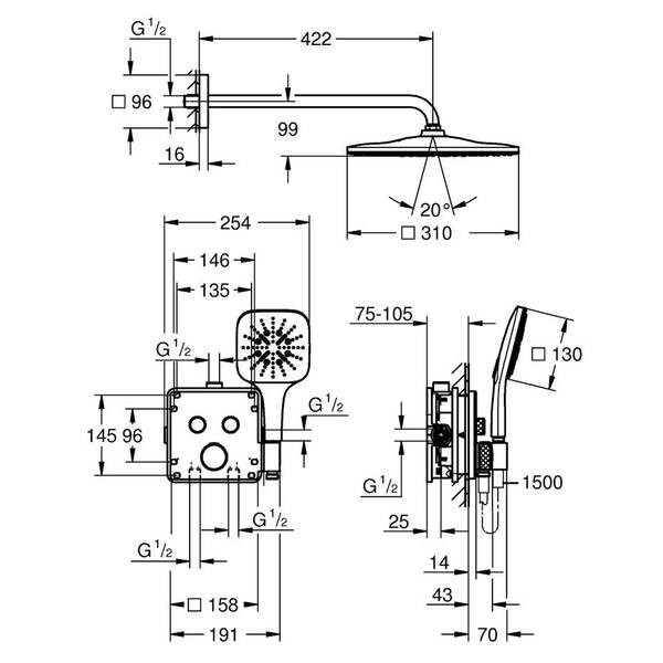 Термостат прихованого монтажу Grohe Grohtherm SmartControl з інтегрованим тримачем ручного душу