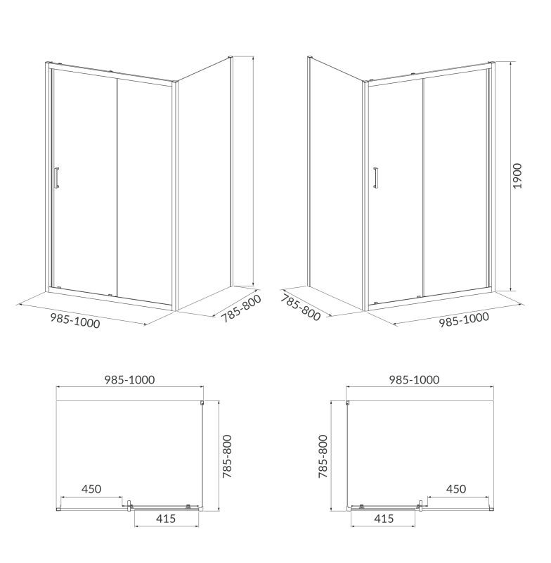 - скло: загартоване прозоре, товщина дверей (фіксованої та рухомої частин) - 5 мм, бокової стінки - 4 мм