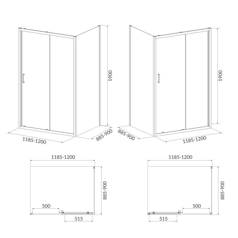 Душова прямокутна кабіна BRASCO 120 х 90 х 190