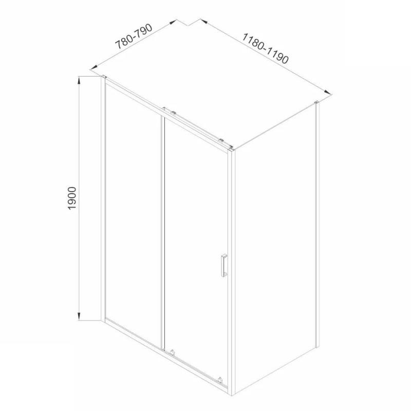 Скло – 6 мм, загартоване. Алюмінієвий каркас. Можливість нівелювання профілю 10 мм. Усі моделі реверсивні. Подвійні верхні ролики. Подвійні нижні ролики з функцією легкого знімання дверей для догляду за виробом. Кабіни укомплектовані водовідштовхувальними силіконовими ущільнювачами. Зручні ручки SCALA душова кабіна квадратна. Розмір 120*80*190см. Розсувні двері. Скло тоноване.