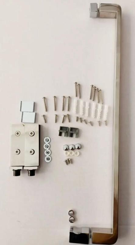Комплектація Упаковка 1/1. Петлі, фіксоване скло, скляні двері, бічна панель, верхній профіль, нижній профіль, бічні профілі, ручка, комплект кріпильних деталей, набір ущільнювачів.