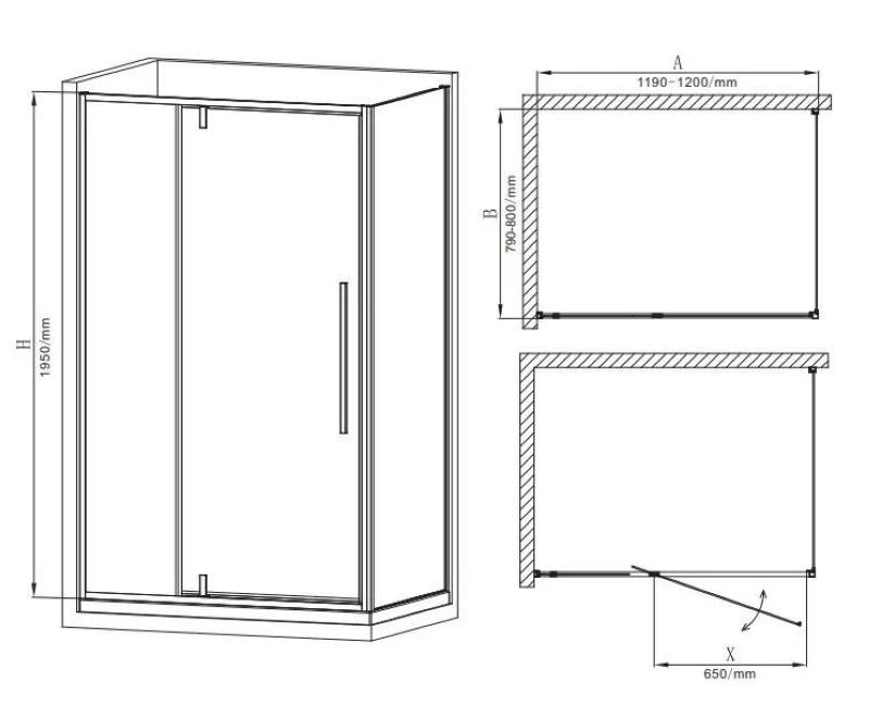 Опис Душова кабіна Mixxus Premium BEVEL SC01-120x80x195-TR Chrome прозора 6мм (MI6871)