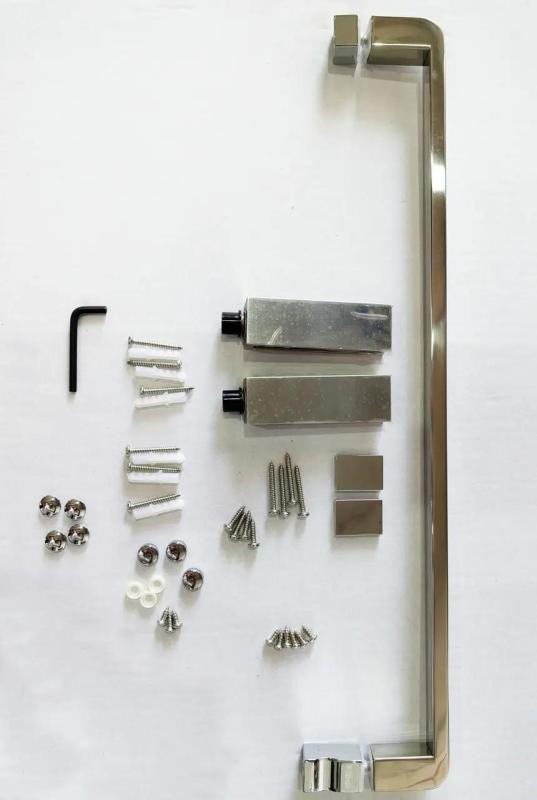 Комплектація Упаковка 1/1. Петлі, фіксоване скло, скляні двері, верхній профіль, нижній профіль, бічні профілі, ручка, комплект кріпильних деталей, набір ущільнювачів.