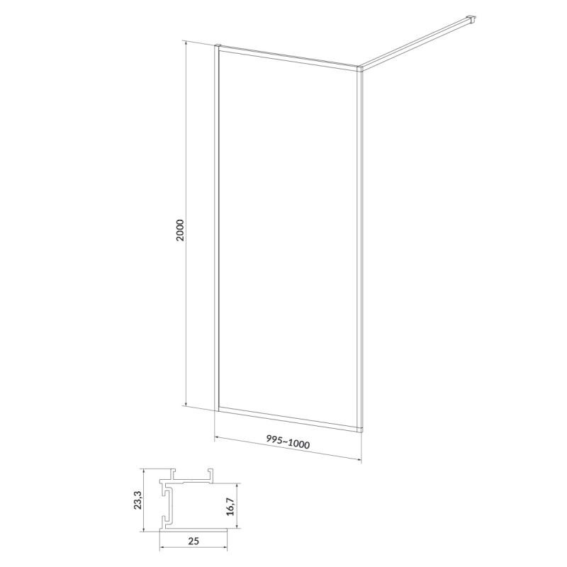 Опис Душова перегородка Cersanit Walk-in Larga 100х200 S932-139 чорний