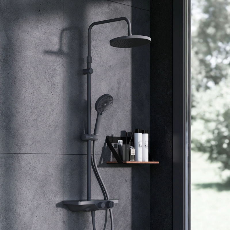 Душова система із термостатом DAMIXA Apollo із верхнім душем та виливом латунна чорна 947760300 - це ідеальне поєднання мінімалістичного датського дизайну та високої скандинавської якості.