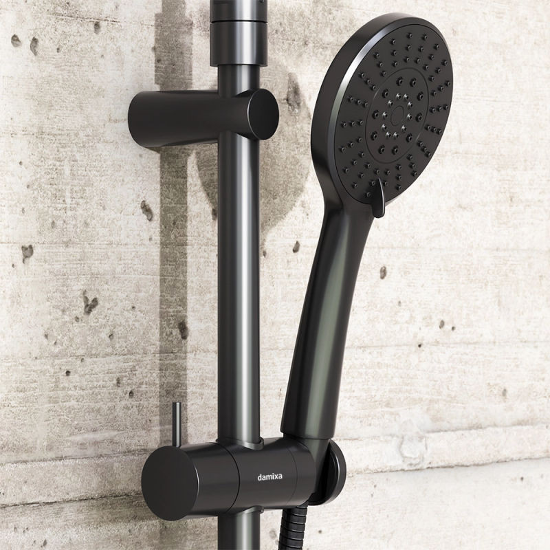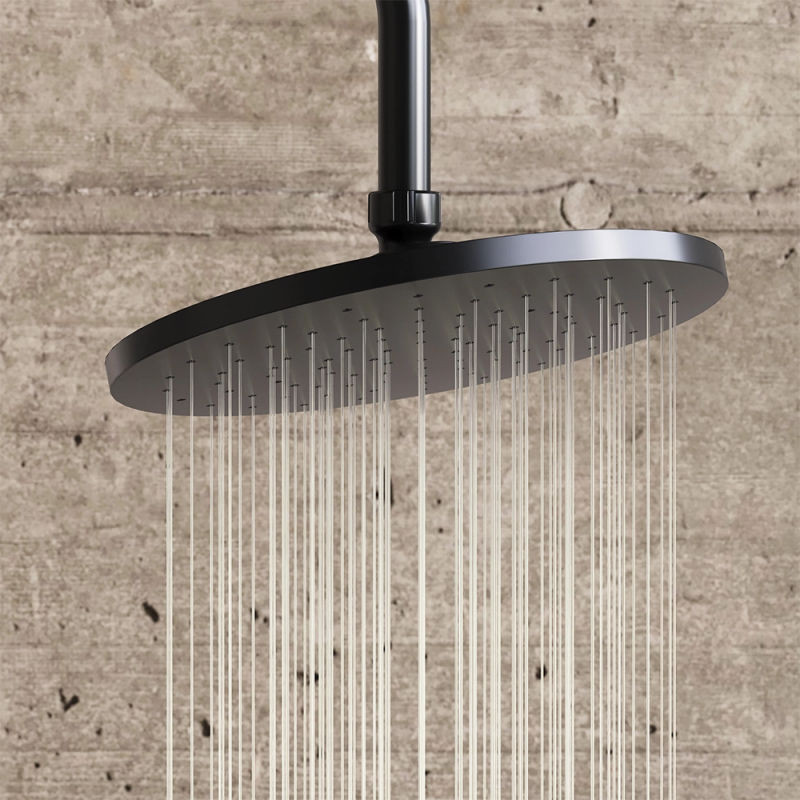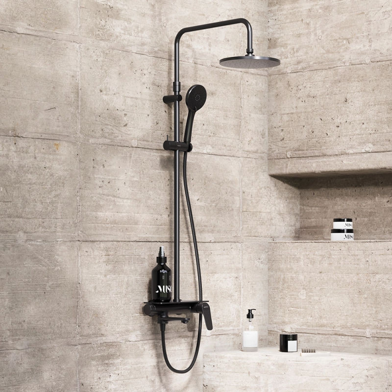 Душова система DAMIXA Jupiter з верхнім душем та виливом у чорному кольорі – це ідеальне поєднання функціональності та сучасного дизайну, яке додасть вашій ванній кімнаті елегантності та стилю.