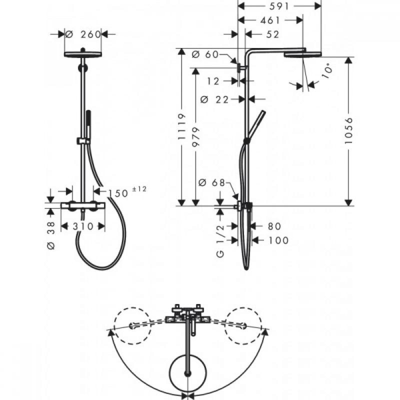 Душова система Hansgrohe PULSIFY S PURO Showerpipe 260 24222670 чорний матовий характеристики: