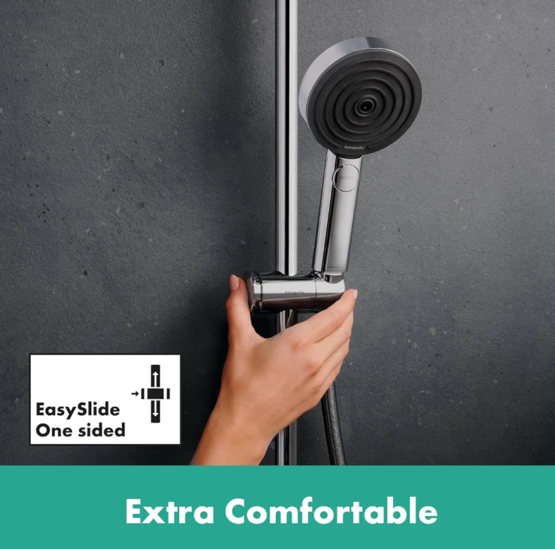 Додаткові переваги включають термостат Ecostat Fine із запобіжною зупинкою при 40°C, регульоване обмеження гарячої води та зручний слайдер, що регулюється по висоті. Всі ці функції роблять HANSGROHE Pulsify S Puro EcoSmart справді універсальним та безпечним рішенням для вашої ванної кімнати.